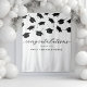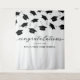 Tapisserie de fête de remise de diplômes avec un fond blanc simple qui peut être changé en n'importe quelle couleur, des casquettes noires tombantes et un modèle de texte de félicitations facile à personnaliser.