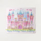Bannière de toile de fond pour fête d'anniversaire de princesse avec un beau château à l'aquarelle sur un fond à l'aquarelle joli. Cette toile de fond de princesse mignonne est facilement personnalisable avec le texte de votre choix.