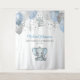Accueillez vos invités avec cette adorable tapisserie de baptême avec éléphant garçon bleu et gris avec ballons, confettis et croix argentée. Facilement personnalisable pour votre événement en cliquant sur "personnaliser".
