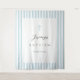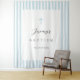 Tapisserie élégante de baptême qui présente des rayures bleu et blanc clair et une simple croix