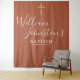 Un baptême moderne avec en arrière-plan un élégant nom de signature en écriture dorée. Personnalisez avec votre baptême spécial ou informations de baptême en lettres d'or chic sur un arrière - plan en terre cuite. Conçu par Thisisnotme©