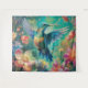 Pour les amateurs de colibris, un beau colibri est entouré de fleurs tropicales colorées.