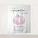 Sympathique panneau d'accueil de la petite fille de douche et accessoires photo avec une aquarelle rose pastel et "Un petit Citrouille doux est en route" dans un mélange de typographie grise et un script élégant avec des swashes. Personnalisez avec le nom de la future mère et la date de la douche.