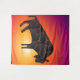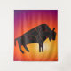 Animaux préhistoriques Fiery Bison ou Taureau suspendu. Animaux anciens inspirés des pétroglyphes dans le monde entier. Une oeuvre d'art antique d'un animal dans son environnement. Cela ressemble à un animal de taureau ou de bison des anciens dessins de grottes. Arrière - plan de coucher de soleil coloré avec bison de lave flamboyante. Inspiré par les pétroglyphes.