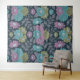 Cette tapisserie présente des fleurs dans les tons violets, bleus et vert olive entourées de frondes de fougères violettes muettes et de feuilles sur un arrière - plan bleu foncé.