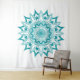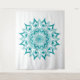 Mandala bleu-vert sur un arrière - plan blanc. Conception géométrique symétrique ornée.