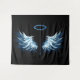 Light, artistique, blue angel wings on a black background. Angel wings.