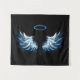 Light, artistique, blue angel wings on a black background. Angel wings.
