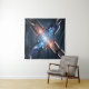 The breaking point reveals an explosion of bright blue and fiery orange energy, glowing with raw force and futuristic intensity. The interplay of light and shadow creates a bold, cinematic effect, drawing the viewer’s attention to the central X-shaped fracture.