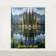 This tapestry design captures a serene lakeside island surrounded by calm waters and majestic mountains. Tall evergreen trees rise gracefully from the island, mirrored in the lake’s surface to create a soothing balance between land and sky. Wildflowers and lush grass at the base add vibrant detail, while the soft clouds above complete the peaceful atmosphere. The phrase “Breathe in” gently reminds viewers to pause, relax, and embrace the calming energy of nature. Perfect for modern interiors, meditation spaces, or cozy living rooms, this artwork blends natural beauty with mindful inspiration, offering a timeless escape into tranquility.