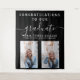 Célébrez la réussite de votre diplômé et organisez une fête simple avec ce fond de scène minimaliste en tapisserie de calligraphie de script à deux photos sur fond noir que vous pouvez accrocher ou attacher à votre mur.