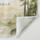 Tapisserie de mariage personnalisée représentant un design aquarelle de nature décontractée comprenant un simple ruisseau d'eau entouré de pins forestiers et de montagnes dans des tons terreux de sauge, vert et beige. Elle comporte le verset biblique Cantique des Cantiques 3:4, "J'ai trouvé celui que mon âme aime". Personnalisez la tapisserie avec des noms.