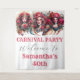 Trois beaux graphismes aquarelle d'imaginaire carnival dames aux longs cheveux bouclés portent de grands roses floraux rose foncé dans leurs cheveux et des plumes ornées sous eux. Ils sont spectaculaires en apparence et sont des danseurs/interprètes de festivals de cirque qui sont là pour vous divertir pour la soirée. Les femmes sont dressées contre un arrière - plan blanc qui a de grands modèles noirs et roses foncés modifiables sur elle pour votre libellé personnalisé. Ils conviennent à tout imaginaire, mythique, cirque, carnaval ou fête festive que vous pouvez accueillir ou à tout événement de fin d'année qui a un thème de mascarade.