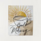 Bonjour, ce design présente un beau soleil doré et des rayons de soleil avec une tasse de café et un texte disant, "Bonjour".