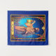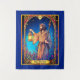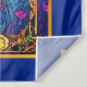 Tapisserie dans une interprétation de la carte Arcana Major "L'ermite", figure de lit tenant une lanterne et le personnel, symbolisant l'introspection et la sagesse. L'arrière - plan d'un ciel étoilé au feuillage luxuriant et coloré donne une esthétique mystique, Art Nouveau.