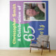 Célébrez un anniversaire avec une tenture de fond personnalisée murale montrant le nom du destinataire et le nombre d'années. Fond pour une fête pour une personne de 65 ans. Ajoutez une photo.