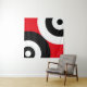 Tenture Cercles Abstraits noirs et blancs en rouge