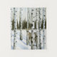 Cerf en chute de neige II par Grace Popp. Un cerf se cache au milieu des arbres dans une scène hivernale paisible.