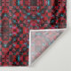 Un motif symétrique complexe couvre tout l'espace, aux formes géométriques complexes, rouge et bleu. Le dessin répétitif crée un effet visuel fascinant et kaléidoscopique.