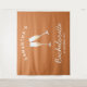 tapisserie rétro retro en terre cuite et blanche avec lunettes de champagne est parfait comme décor photo de fête de bachelorette. Célébrez votre douche nuptiale avec le thème parfait de la fête du champagne en terre cuite et blanc, le thème parfait pour la nostalgique mariée vintage les années 70 et ses demoiselles d'honneur.