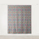 Des motifs audacieux et symétriques aux tons vifs d'orange, de rose et de turquoise créent un design géométrique complexe. Les motifs répétitifs s'emboîtent de manière transparente, formant un effet kaléidoscopique qui attire l'oeil à travers la composition.