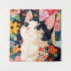 Un imprimé d'art animé avec un chat curieux entouré de fleurs audacieuses et colorées et un arrière - plan d'inspiration patchwork. Les motifs floraux complexes ajoutent charme et fantaisie au design. Parfait pour les amoureux de les chats et les amateurs de déco ludique et d'inspiration nature !