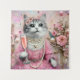 Un mignon et drôle petit chat portant sa robe rose et ses perles et tenant un verre L'art généré par l'IA