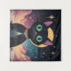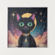 Tenture Chat noir cosmique futuriste atomique en clair de