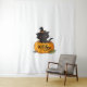 Tenture Chat noir mignon en citrouille avec casquette sorc