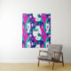 Tapisserie au design moderne du milieu du siècle avec deux chats stylisés aux formes audacieuses et géométriques de turquoise, magenta, bleu foncé et blanc. motifs Abstraits et formes rétro remplissent l'arrière - plan, lui donnant une ambiance amusante et vintage avec un bord minimaliste.