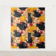 Motif peint à la main avec chats noirs, citrouilles et feuilles d'automne. Mix-media- peinture numérique et aquarelle.