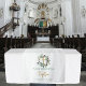 Un beau signe de chemin de table de fête sur le thème du baptême avec une couronne de feuilles d'olive, idéal pour votre baptême. Personnalisez cette pancarte de tapisserie de baptême unique et créez une belle décoration de table pour votre célébration de baptême ou de fête religieuse. Cette tapisserie de buffet de baptême familial ou de table de cadeaux est polyvalente car elle peut être utilisée sur votre table à manger, en bannière suspendue, sur une table de snacks ou de boissons, etc.