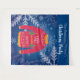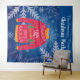 Une tapisserie pour des fêtes de fin d'année amusantes et des soirées de Noël, dîners. Un fond bleu avec de grands flocons de neige blancs, cristaux. Décoré avec un horrible pull de Noël rouge, blanc, orange et vert. Personnalisez et ajoutez le nom de votre famille. Le texte : Soirée de Noël est écrit en blanc avec un style de lettrage manuscrit moderne. Peut être utilisé comme un panneau de bienvenue, décoration murale de fête ou comme arrière-plan pour photomaton.