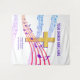 Élégant CHRIST THE CENTER Christian Worship Tapestry, montrant une croix vide de couleur or au milieu de staves de musique colorées, dressée contre un arrière - plan blanc clair. Le texte dit BIENVENUE À NOTRE ÉGLISE ET OÙ LE CHRIST EST LE CENTRE DE NOTRE CULTE et est PERSONNALISABLE afin que vous puissiez ajouter votre nom d'église et votre devise. Ce mur chrétien moderne accroché ferait un grand ajout à la décoration murale de votre maison, église ou organisation pour célébrer non seulement les fêtes chrétiennes de Pâques et Noël, mais aussi pour reconnaître Jésus au centre. Choisissez parmi une large sélection de dessins de Pâques chrétiennes basées sur la foi sur les cartes, invitations, décoration de maison, vêtements et cadeaux, conçus par les Designs beréens. Également disponible en turquoise. Vous pouvez également changer la couleur arrière - plan en fonction de votre décoration.