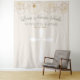 Une cabine photo simple mais élégante de couleur rousse sur fond de fleurs dorées dorées et les mots "L'amour n'échoue jamais" et une croix chrétienne. Chers souvenirs de votre journée spéciale avec des photos de tous vos invités!