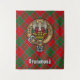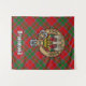 Clan Drummond crête badge entouré d'une sangle et boucle sur l'arrière - plan tartan. Texte personnalisé.