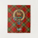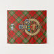 Clan Scott badge crête entouré d'une sangle et boucle sur l'arrière - plan tartan rouge. Texte personnalisé.