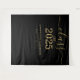 Cette tapisserie minimaliste et moderne de graduation, cabine photo/accessoires, présente un arrière - plan noir classique avec les mots "classe de 2025" dans l'élégante police de caractères or stylisée. Nom de la Personnaliser et nom de l'école de votre diplômé. Facile à customiser.