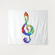 Polygone, arc-en-ciel, clé musicale brillante sur arrière - plan blanc. tatouage en polygone. Clé d'arbre