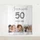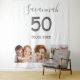 Pour une fête d'anniversaire de 50 ans (ou tout âge). Un collage de 3 de vos photos d'elle, d'amis, de famille, d'intérêts ou d'animaux de compagnie. Un fond blanc chic. Personnalisez et ajoutez son nom, son âge 50 ans et une date. Date de naissance ou date de la fête d'anniversaire. Texte de couleur grise.