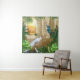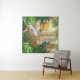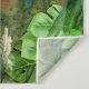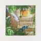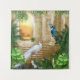 Des paons royaux blancs et bleu-vert sur un temple d'imaginaire tropical arrière - plan parsemé de feuilles exotiques et de fleurs blanches motif de collection mariage