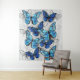 Vertical composition of réalistes, blue and white morpho butterflies on gray textured background. Morphine bleu.