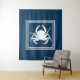 Design à thème aquatique avec décoration de crabe en carrés rayés sur arrière - plan bleu