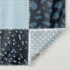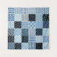 Conception de surfaces composées. Motif en patchwork sans couture de carrés cousus avec différents ornements géométriques. Impression textile en bleu.