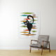 Illustration de style abstrait coloré du milieu du siècle avec chat noir et décoration de losange coloré sur arrière - plan blanc