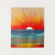 Tapisserie dans un coucher de soleil semi-abstrait sur l'océan, aux couleurs psychédéliques de rouge et d'orange vif, avec un océan bleu profond