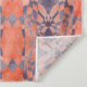 Un motif géométrique complexe aux courbes symétriques et aux formes superposées présente des teintes orange et violet. Le design combine des arêtes vives et douces, créant une composition visuellement dynamique et harmonieuse.