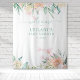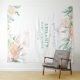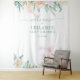 Tapisserie élégante avec des fleurs à l'aquarelle dans des tons pastel. Ce design présente Bienvenue dans une police manuscrite de couleur vert menthe.