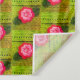 L'image florale imprimée sur la tapisserie est d'une photo de crochet original travail conçu à la main et Copyright © par le concepteur publié Delores Chamblin. L'image d'une section d'un casquette artisanal unique, feuilles verts et fleur jaune avec bouton nacré est répétée sur la tapisserie. La teinte orange est un filtre numérique.