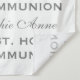 Design charmant et élégant avec écriture manuscrite pas et répétition, faux croix d'argent. Utilisez l'outil Personnaliser pour ajouter vos informations. Pour les objets correspondants, veuillez visiter ma collection de la Sainte Communion.